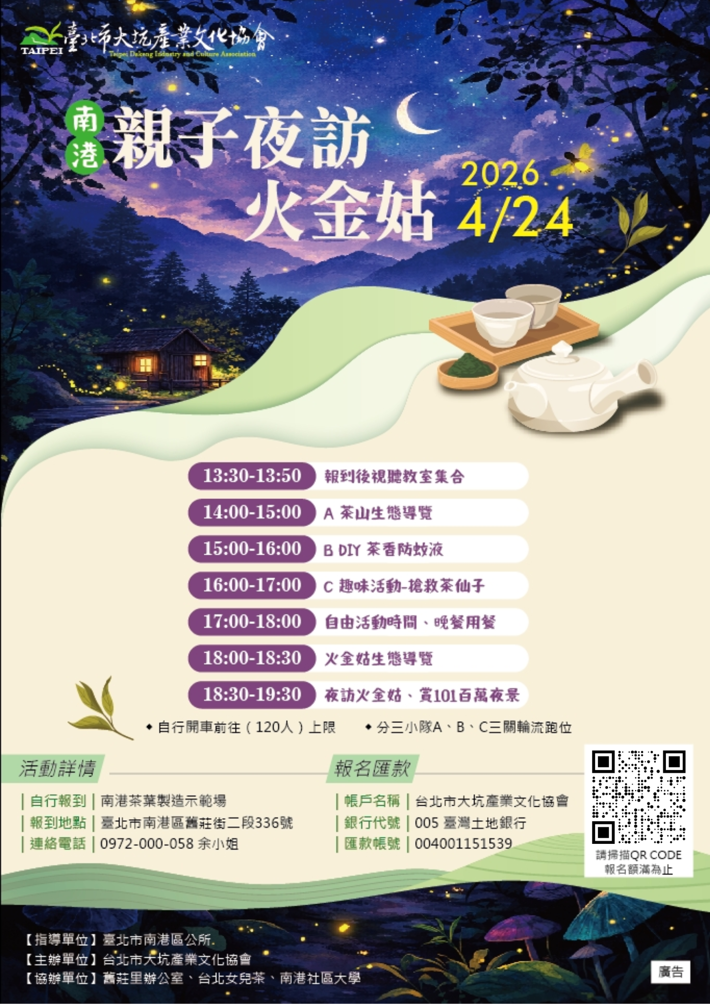 【南港茶山夜訪・火金姑生態導覽】限定加開場