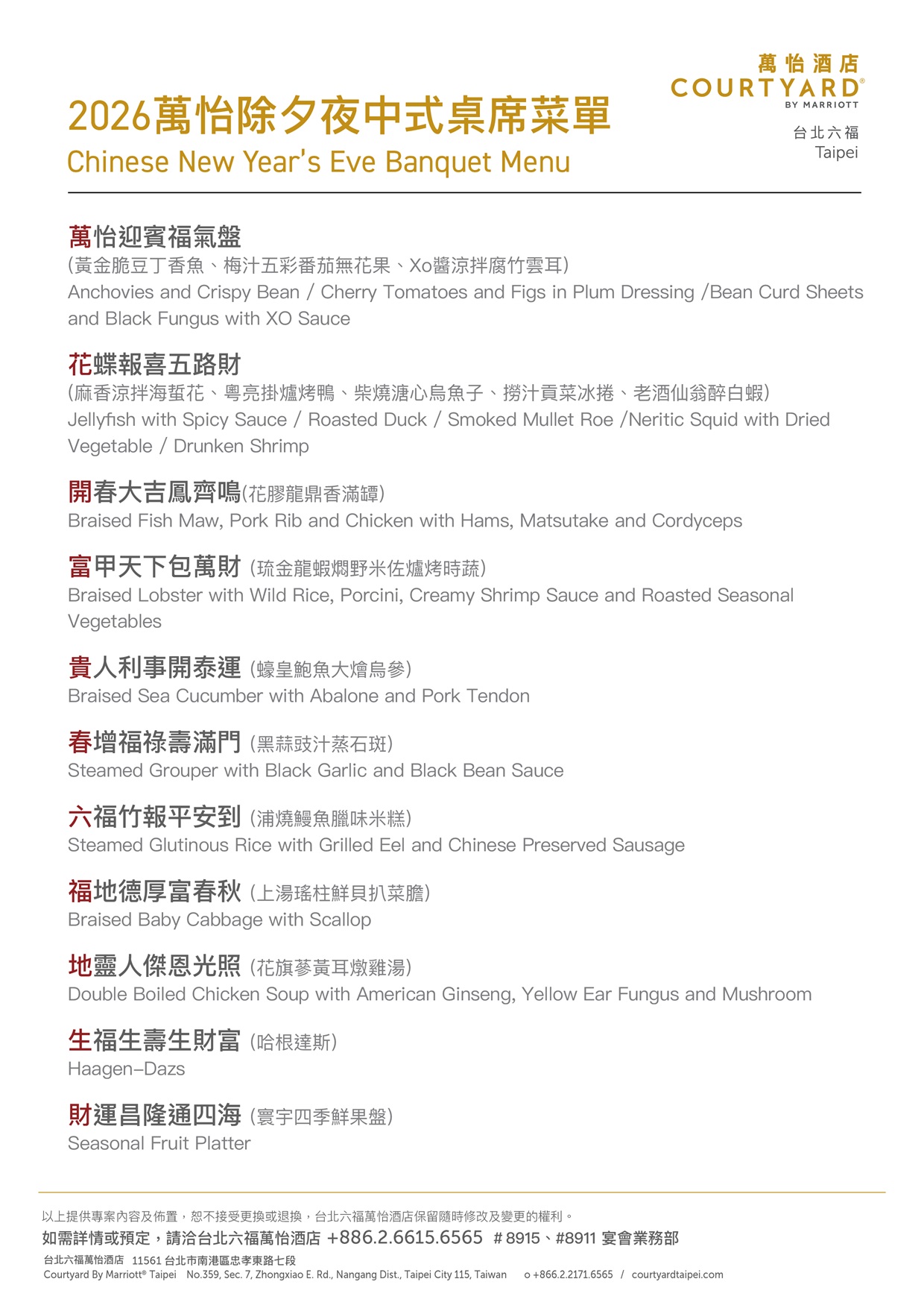 - 宴會廳:02-6615-6565 # 8915、#8911