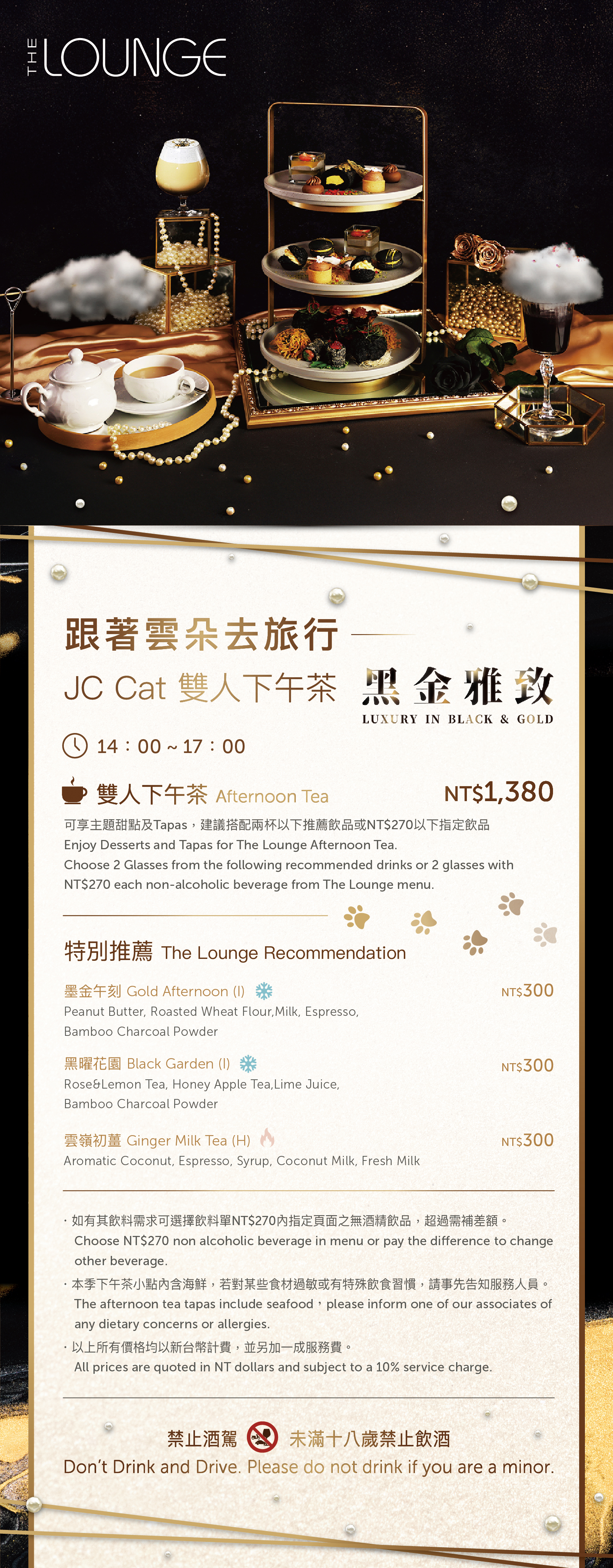 【THE Lounge】跟著雲朵去旅行- JC Cat 雙人下午茶|黑金雅致