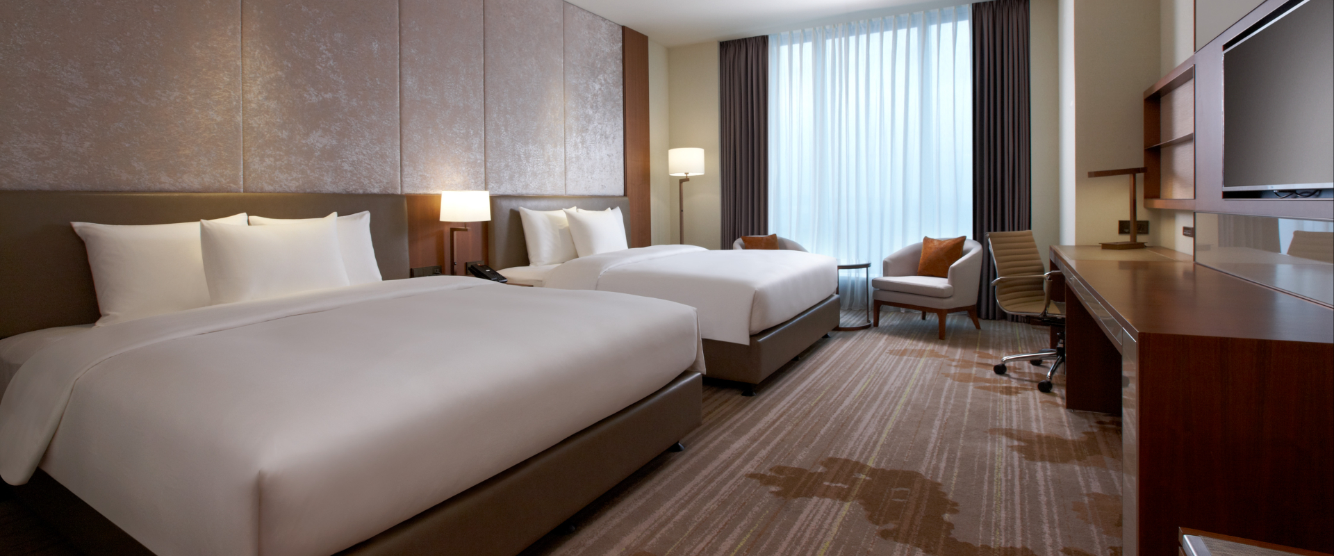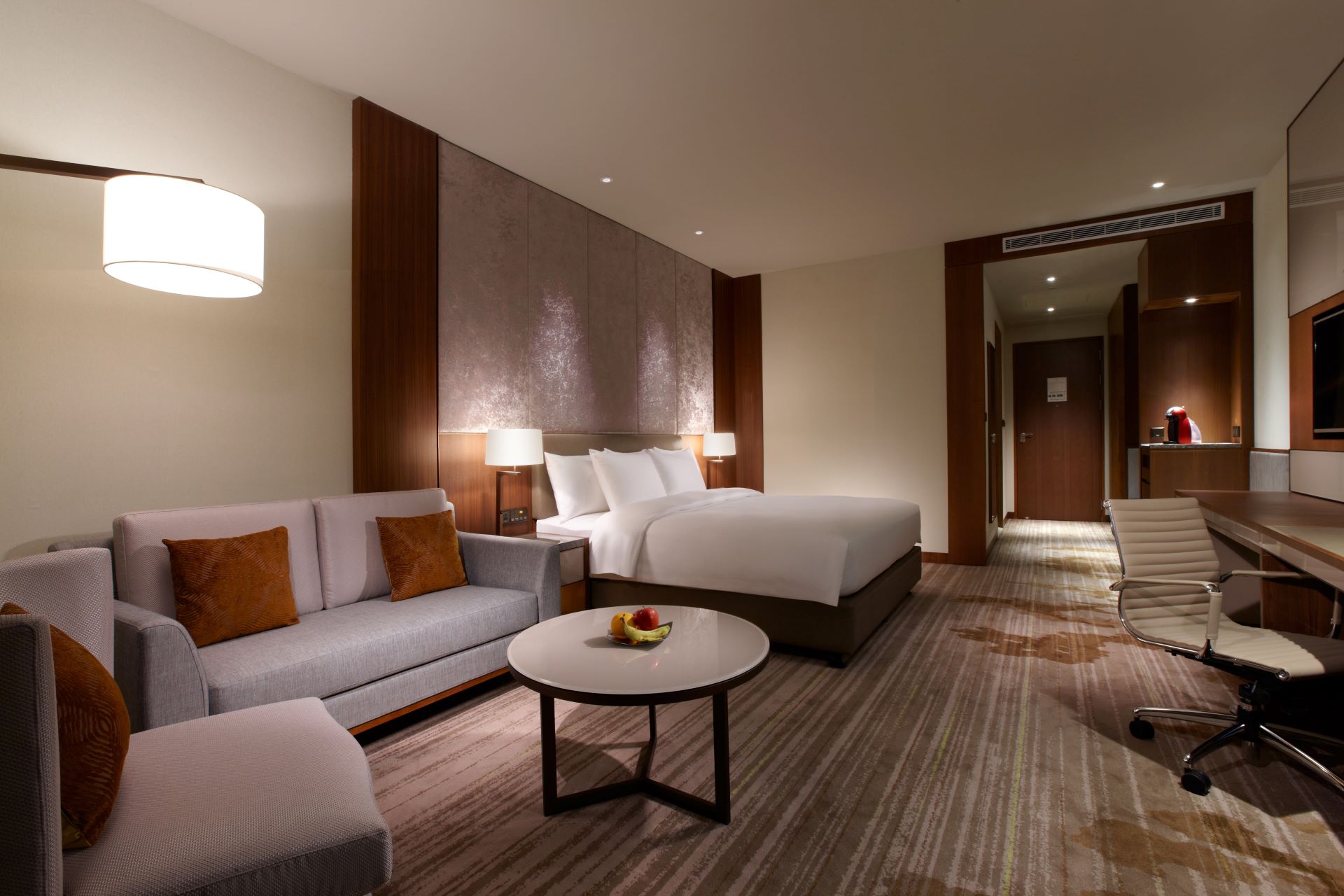 設有專屬的休憩沙發及大扇落地玻璃窗一覽山景或城市特色,自然光線灑落讓整間客房更顯朝氣明亮,房內備有衛浴清潔用品、吹風機、浴巾、熨斗、無限上網及免費健身房使用,不論出差或旅行都能自在享受!