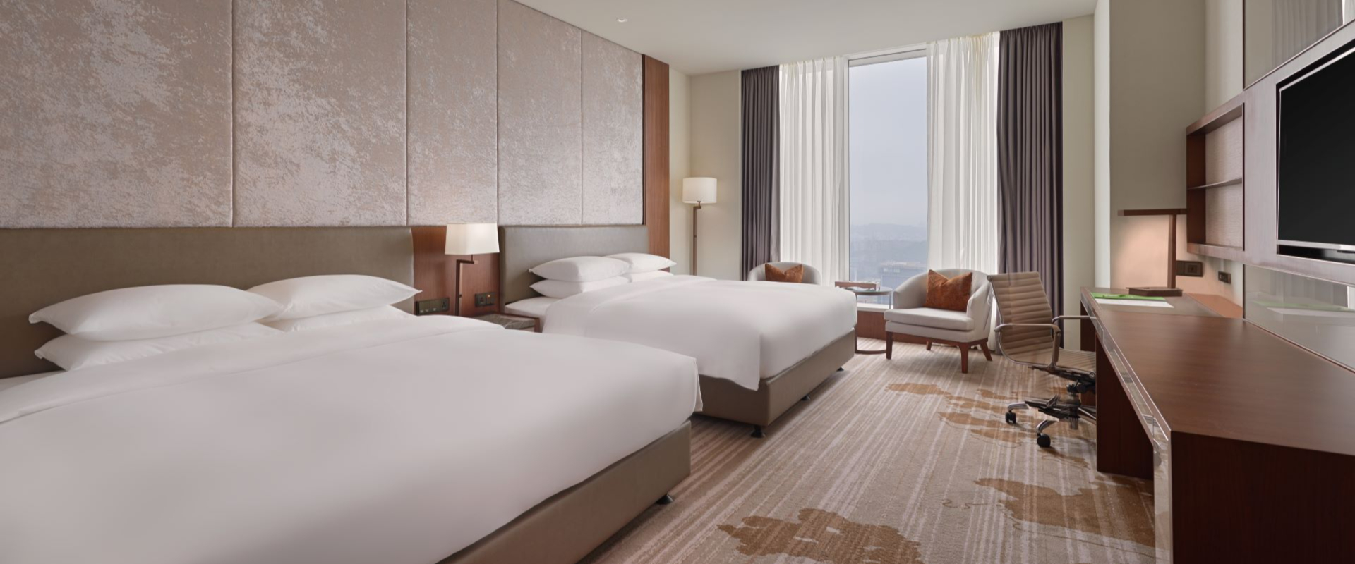 大扇落地玻璃窗一覽山景或城市特色,自然光線灑落讓整間客房更顯朝氣明亮,房內備有衛浴清潔用品、吹風機、浴巾、熨斗、無限上網及免費健身房使用,並享有行政樓層貴賓廳的星級餐飲體驗,專屬的舒適環境不論出差或旅行都能 自在享受!