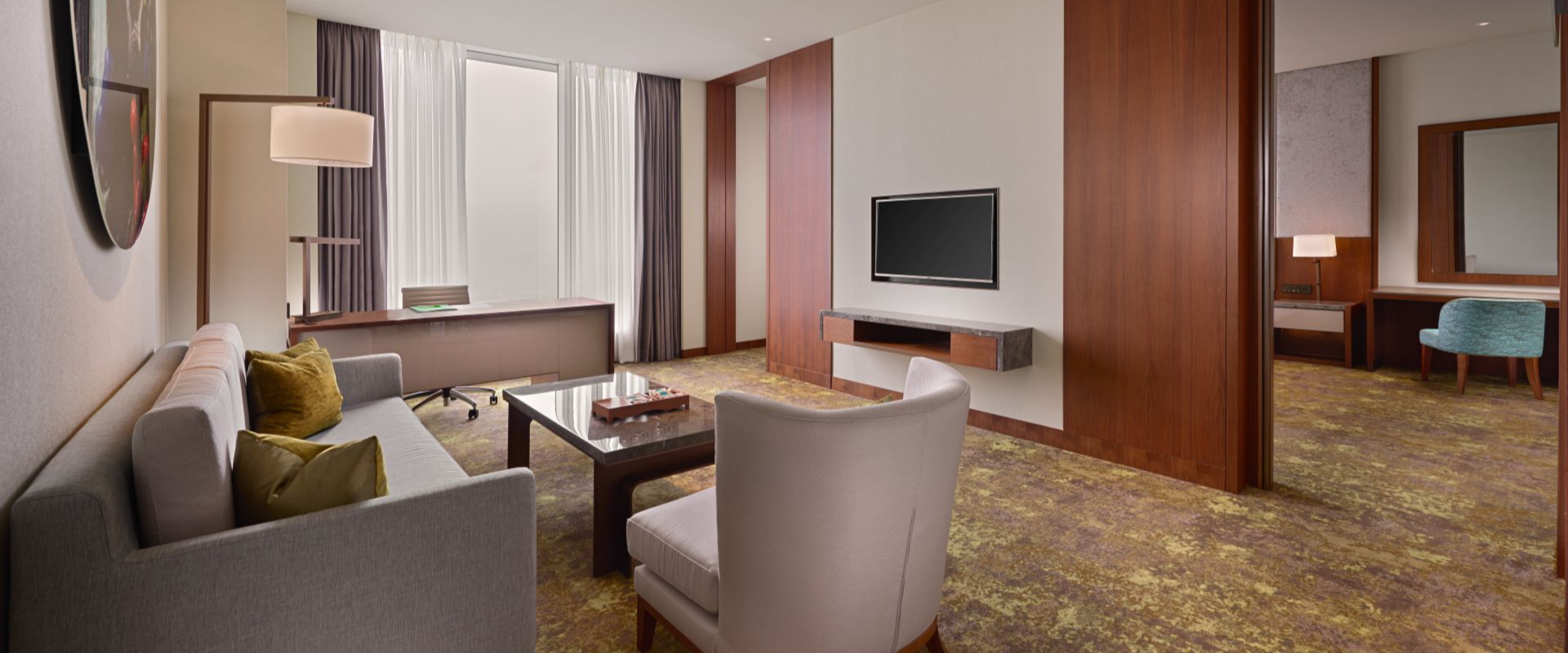 大扇落地玻璃窗一覽山景或城市特色,自然光線灑落讓整間客房更顯朝氣明亮,房內備有衛浴清潔用品、吹風機、熨斗、無限上網、健身房及個人獨享的舒適客廳,並享有行政樓層貴賓廳的星級餐飲體驗,寬敞舒適空間及貼心服務,不論出差或旅行都能享受每趙旅程!