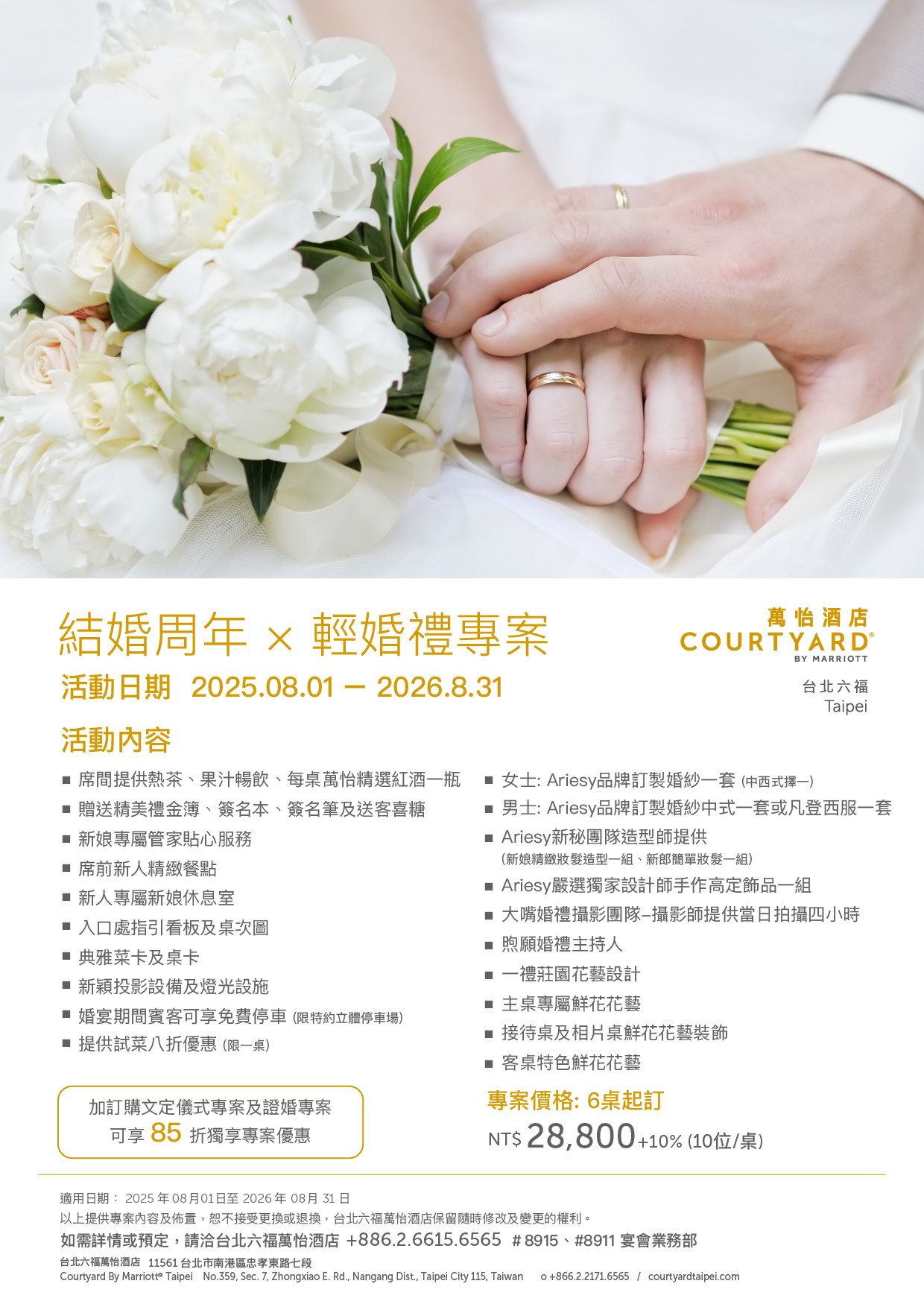 加購證婚儀式專案再享85折優惠