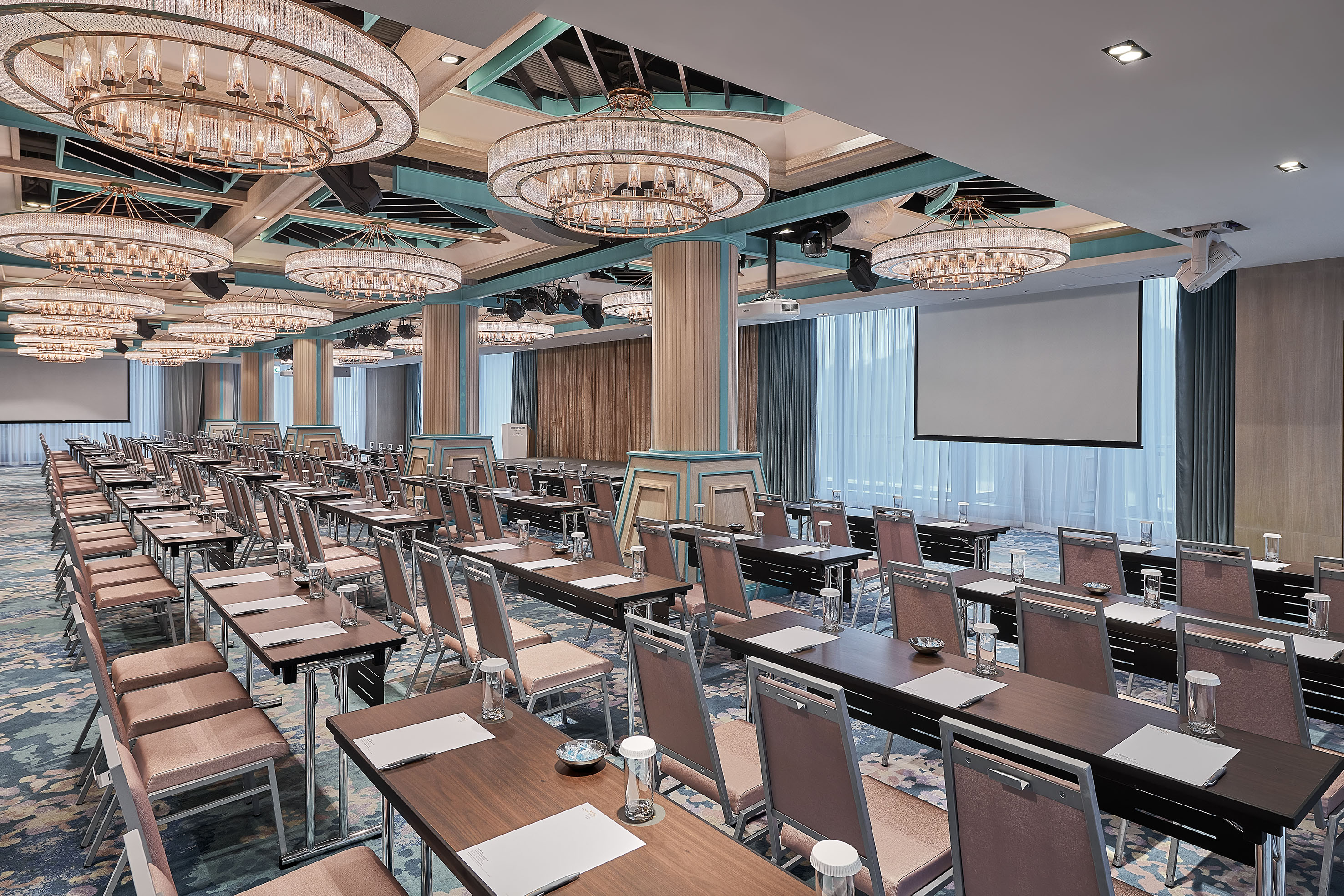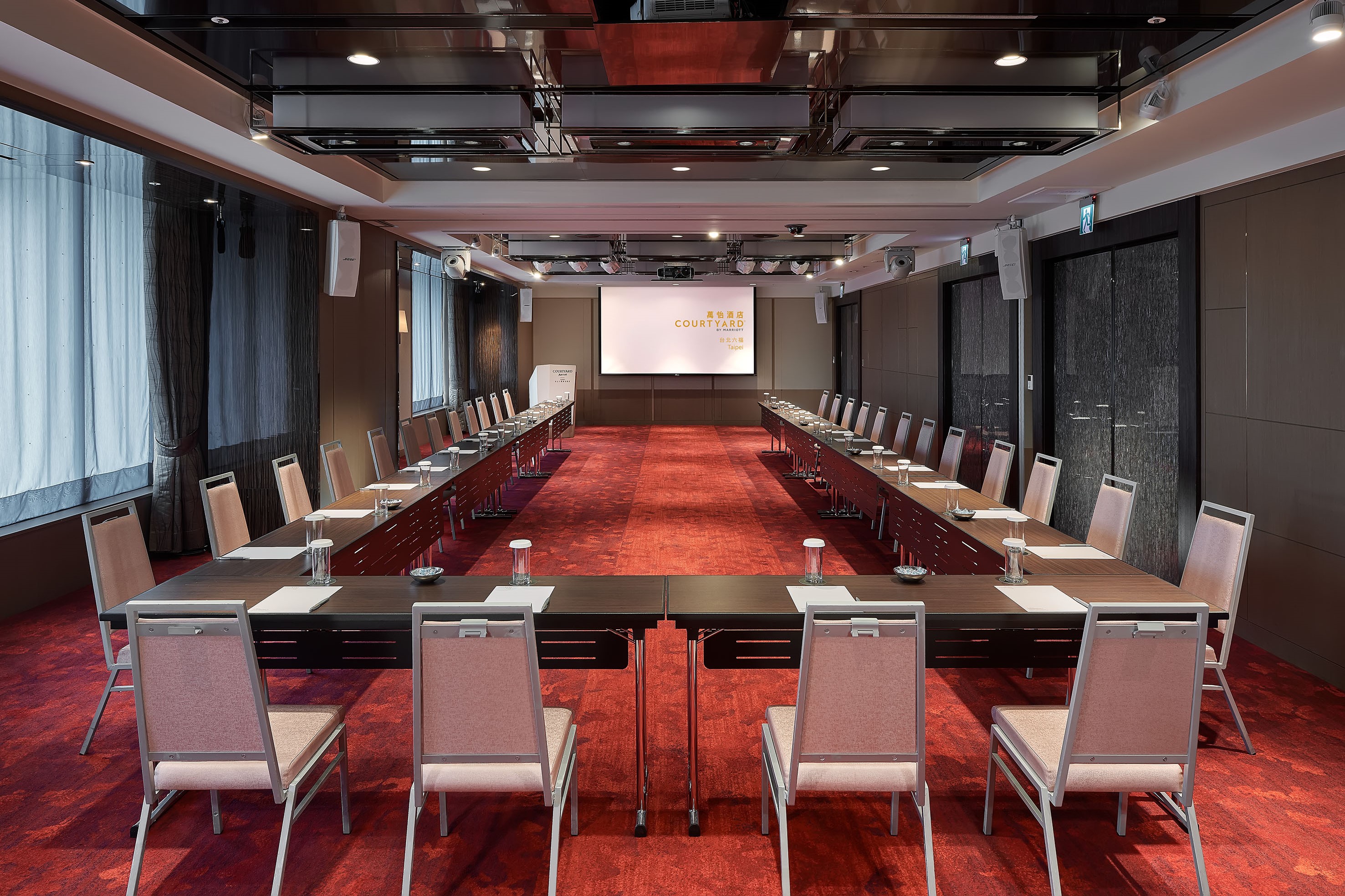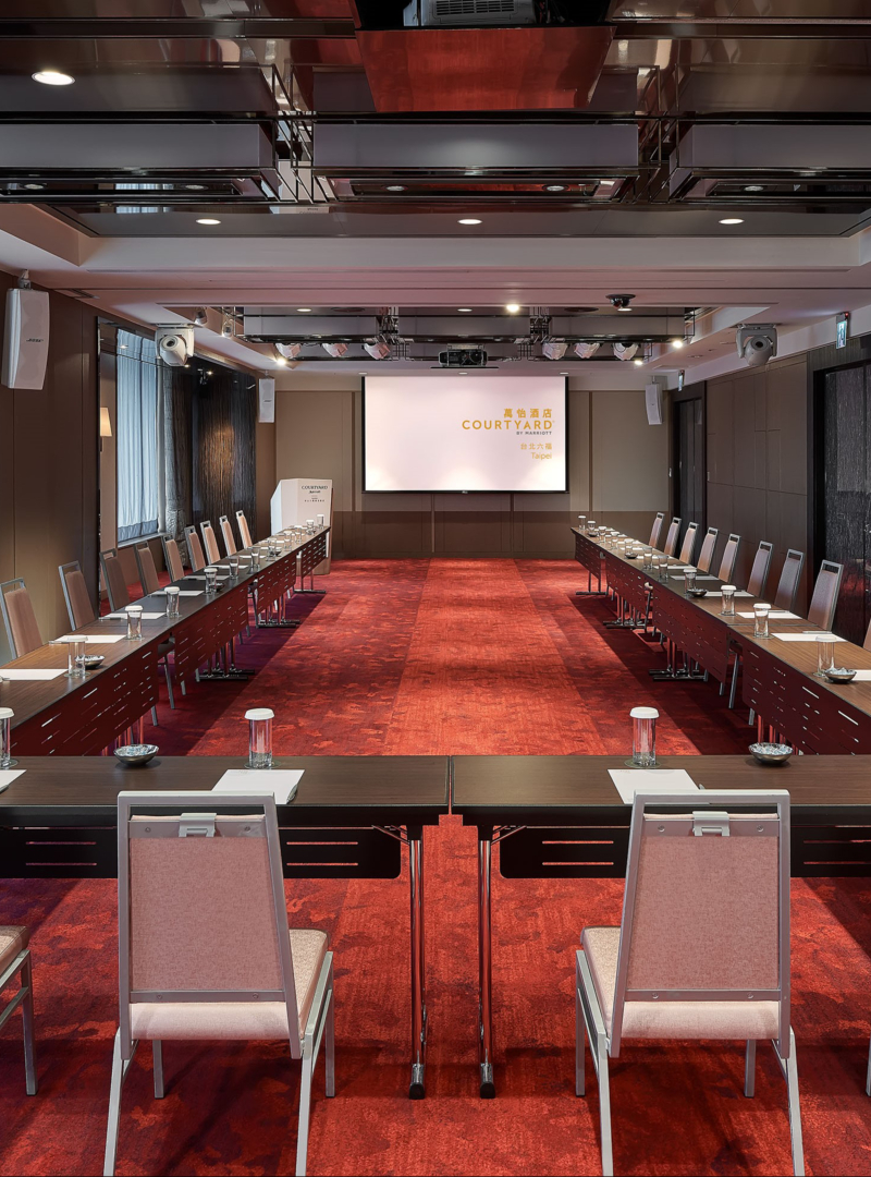 台北六福萬怡酒店提供 9 樓「山、海、林、水、晶、雲、風、光」共 8 個廳別以及 7 樓「超新星宴會廳」,通透開闊的會議空間與大面積落地玻璃,光線明亮、空間開闊,可劇院式、課堂式、U 字型、酒會式等不同座位排列,讓每場會議顯得輕鬆有朝氣,效率靈感更加倍!